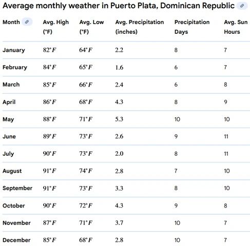 Hurricane Season: June 1 to November 30; but, the northern side of the island has only seen Tropical Storm conditions over the last 10 years (worst of which was Tropical Storm Franklin in 2023).